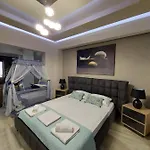 Denna lägenhet på 75 m^2 har balkong, kokvrå och klädloge i varje rum. Rika'S Luxury Seaside lägenhet har också en uteplats. Sängar med sängkläder och allergivänliga kuddar finns tillgängliga. Duschkabin och separat toalett tillhandahålls också.